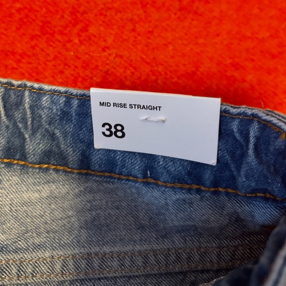 Zara Z1975 metallic silver mid rise straight cut jeans new with tags. Mid rise, five pockets, front button and zip fastening, straight leg, relaxed loose fit, 100% cotton, made in Europe. Marked size US 6 but they fit larger (as a US 8 or even 10), please see measurements. All measurements are approximate and taken with the garment laying flat: Waist 16" Front rise 12" Inseam 32" This item comes from a smoke free, pets friendly home. Recycled bags/box used when possible. Please, let me know if you'd like any additional info. Thanks for watching!