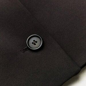Short waistcoat-style top with a round neck. Side vents at the hem. Front button fastening.