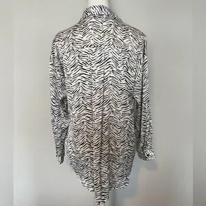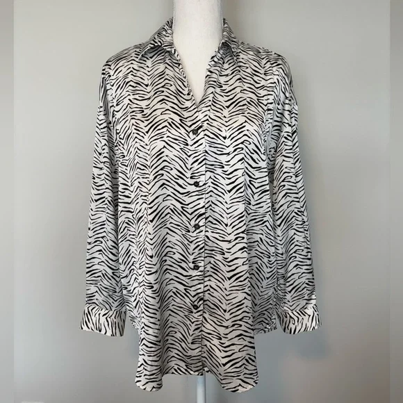 zara zebra print blouse, animal print button down shirt, silky zebra blouse xs, black white animal print top, long sleeve zebra shirt, relaxed fit blouse
