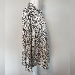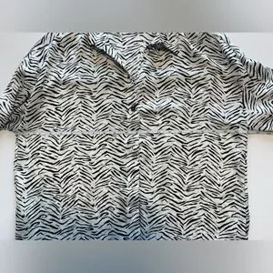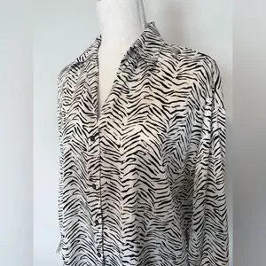Zara zebra print blouse in size XS. This versatile piece features a bold animal pattern paired with a classic button-down silhouette. The silky fabric gives it a lightweight, flowy feel with a relaxed fit.