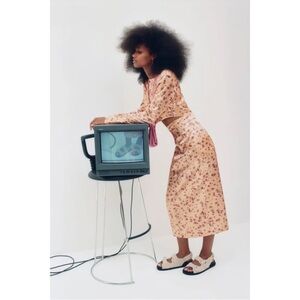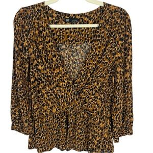Zara Zebra Print Button Down Blouse XS Silky Long Sleeve