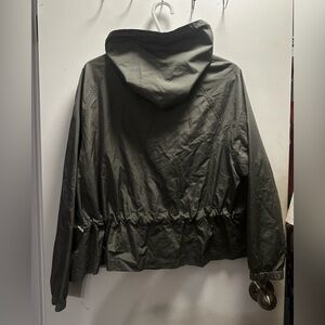 • Style: Cropped hooded utility windbreaker with zip front, flap pockets, and drawstring waist