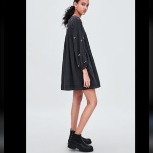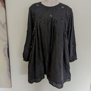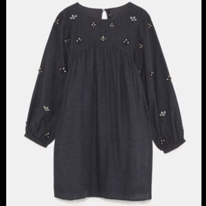 Zara bejeweled beaded tunic dress with pockets grey xs