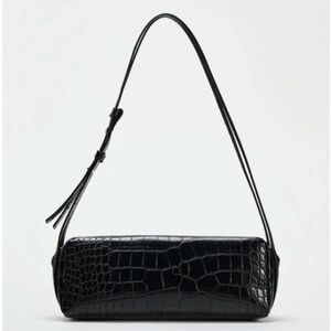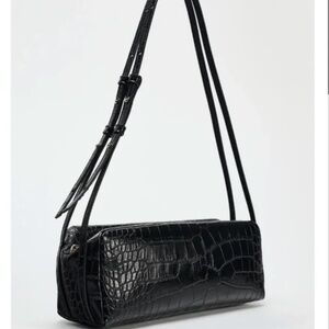 Zara black crock pattern east-west long baguette shoulder bag NWT