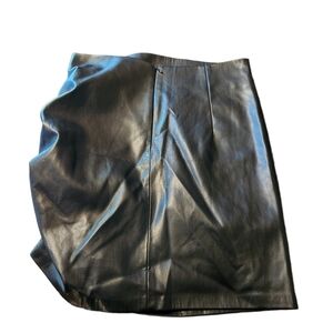 Zara, black faux leather, highwaist, short skirt. Mid-length zip-down back,draped fabric detail on the side,thin lining. Super comfortable, cute, stretchy skirt and in great condition size M