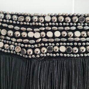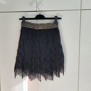 Zara black fringe miniskirt with embellished waist size XS NWT