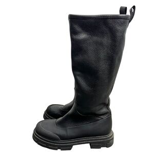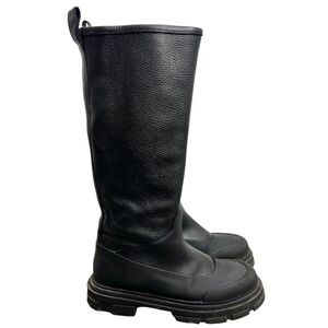 Zara black pebbled leather shearling lined tall lug sole winter boots EU 40