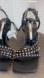 Square toe. Buckle closure around ankle. Silvertone studs.