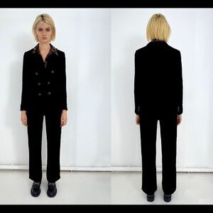 Zara black velvet high waisted straight leg pants size M NWT