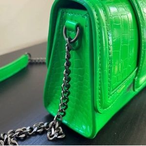 The strap cannot be detached but can be tucked inside or used as a crossbody