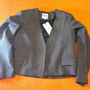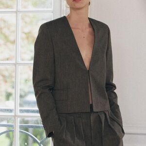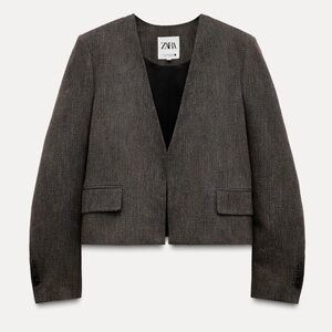Zara brown marl V-neck viscose and cotton cropped blazer coat NWT