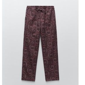 Zara burgundy and brown paisley high rise pajama style pants NWT