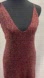 A burgundy sparkly maxi dress from Zara. The dress is sleeveless with thin straps and a V-neck. It's made from a knit fabric with a subtle sparkle. Gold and silver metallic threading throughout. The dress is floor-length and features a fitted bodice and a flowing skirt.