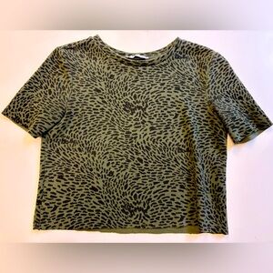 Zara cheetah print olive green cropped stretchy short sleeve sweater Small