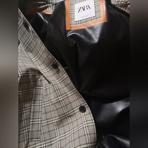 Zara beige plaid coat is a water repellent, stretch coat. It's a traveler, made to move coat. New without tags. Never worn or used. Pet friendly non smoking home