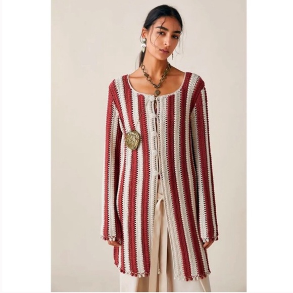 Zara collection crochet knit long boho cardigan coat two tone striped