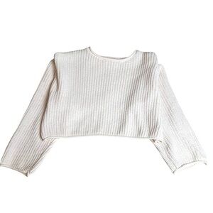 Zara cream cropped ribbed sweater, Small, long sleeves, knitted, Neutral