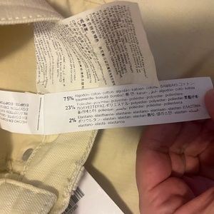 Zara cream mid-rise flared cropped jeans new with tags. Slightly stretchy fabric, flared hems with seamless trims, front zip and metal button fastening, pockets. The official colour is ‘’vanilla’’. Marked size US 8 (EUR 40). All measurements are approximate and taken with the garment laying flat: Waist 15" Front rise 11" Inseam 25" This item comes from a smoke free, pets friendly home. Recycled bags/box used when possible. Please, let me know if you'd like any additional info. Thanks for watching!