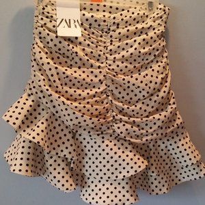 Zara cream polka dot ruffle pleated skirt. Zipper down back, fully lined and structured. Size S NWT