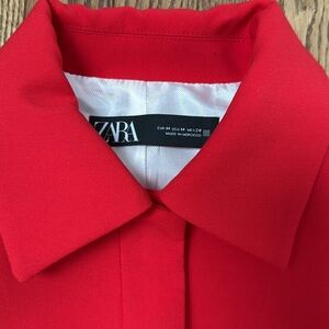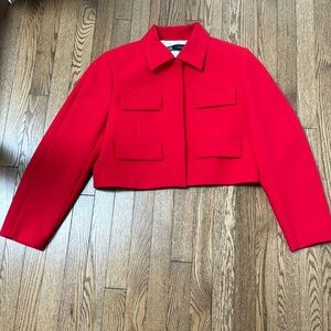 Bright red blazer with shoulder pads. In new condition. Shoulders 15.5”, pit to pit 20”, length 20.5”.