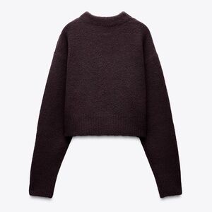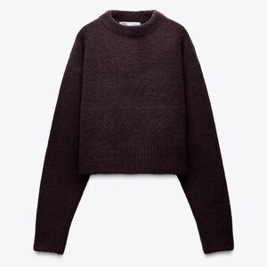 Zara dark purple eggplant touch of wool soft round neck cropped sweater NWT