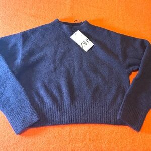 Zara dark purple eggplant touch of wool ultra soft round neck cropped sweater new with tags. Round neck, long sleeves, slits on sides, cropped style, ribbed hems, very soft knit jersey made of 53% acrylic, 40% polyester, 5% wool and 2% elastane. Colour is accurate in the stock photos, mine are taken in artificial light. Marked size L Large. All measurements are approximate and taken with the garment laying flat : Armpit to armpit 21", total length 19". This item comes from a smoke free, pets friendly home. Recycled bags/box used when possible. Please, let me know if you'd like any additional pictures and/or measurements or other info. Thanks for watching!
