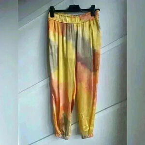 Zara die-dye silky joggers Yellow Orange Pants Lightweight size S