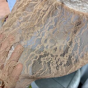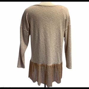 Zara dusty rose peach V-neck long sleeve sweater lace trim Sz M
