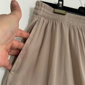 This elegant beige wide leg pants offers a sophisticated look for any occasion. Its neutral tone makes it versatile and easy to pair with various tops. In perfect condition. Back to school
