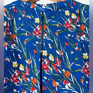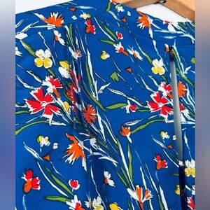 Zara floral vneck blouse, Small, blue, open seamed back, ruffles, flared, Pretty