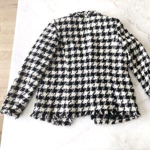 Zara frayed checked blazer black & white woven houndstooth jacket / coat, size S