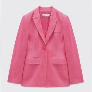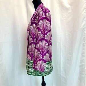 Zara fuchsia purple green printed satin open front long sleeve lapel blazer S