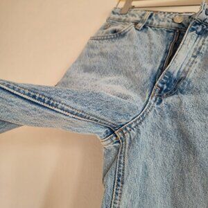 Zara Full-Length High Rise Raw Hem Frayed Blue Jeans, Size 6 US (4 UK). Designed with a high-rise fit and raw, frayed hems for a contemporary, distressed look. Ideal for casual or streetwear-inspired outfits.Pre-owned in good condition