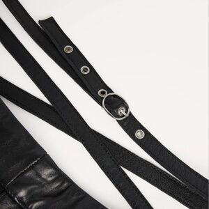 Straight cut pants in a rich genuine leather. Sits mid waist and comes with detachable leather string belt