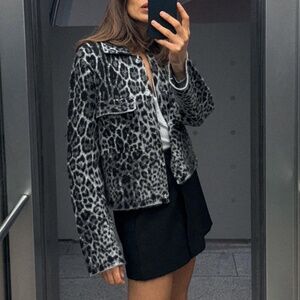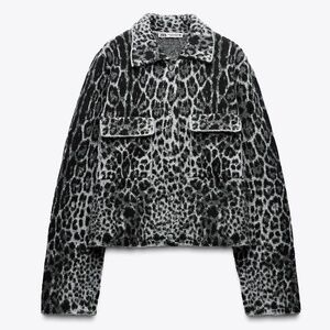 Zara gray leopard animal print jacquard knit cardigan new with tags. Jacket with lapel collar and long sleeves, front patch pockets with flaps, front button closure, super soft knit made of 65% acrylic, 27% polyester,7% polyamide and 1% elastane. Colour is accurate in the stock photos, mine are taken in artificial light. Marked size XL Extra Large. All measurements are approximate and taken with the garment laying flat : Armpit to armpit 22.5", total length 22.5". This item comes from a smoke free, pets friendly home. Recycled bags/box used when possible. Please, let me know if you'd like any additional pictures and/or measurements or other info. Thanks for watching!