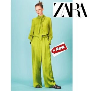 Zara green high waisted saint effect front cross over wrap pleated wide leg pant