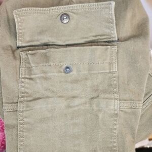 Special Edition green denim cargo style skinny low rise Khakis with draw string waist and black faux leather trim pockets, 'Z1975, by Zara Basics.