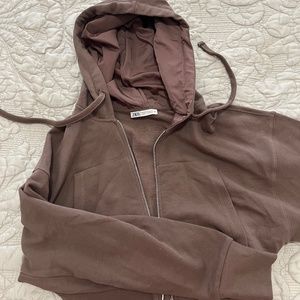 Zara hooded cropped sweatshirt colour (eggplant) light brown size small worn once great condition