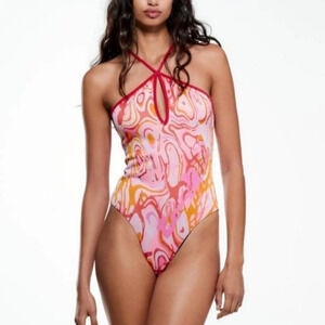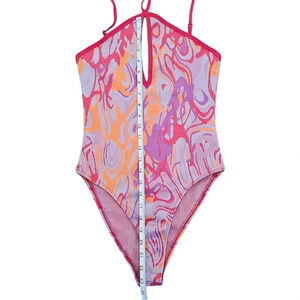 Zara jacquard bodysuit pink orange purple abstract print small NWOT