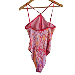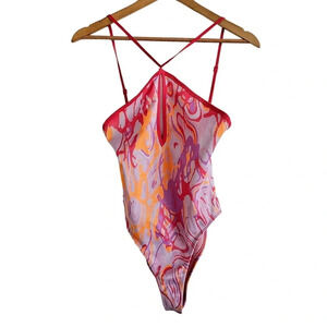 Zara jacquard abstract print bodysuit, pink purple orange, small