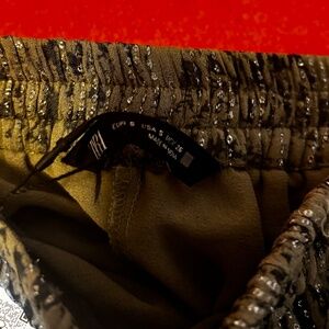 Zara khaki green and metallic fibre elastic waist long skirt NWT