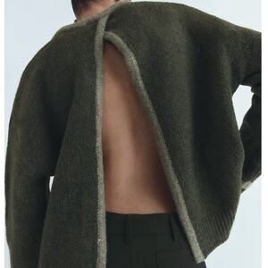 Zara khaki green open back soft knit sweater NWT