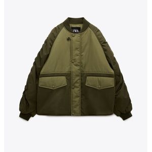 Zara khaki green voluminous bomber puffer jacket new with tags. Round neck bomber, long cuffed sleeves with cool ruching details on them, front flap pockets with buttons, front hidden zip and snap button closure, two-toned khaki green with a stunning contrasting orange lining. Nice oversized relaxed fit that will be very trendy in 2023. Marked size M. All measurements are approximate and taken with the garment laying flat: Armpit to armpit 24" Total length 26’’ This item comes from a smoke free, pets friendly home. Recycled bags/box used when possible. Please, let me know if you'd like any additional pictures and/or measurements or other info. Thanks for watching!