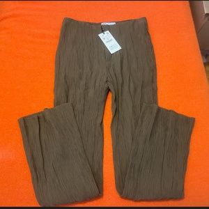 Zara khaki olive green high rise wrinkle effect full length pants NWT