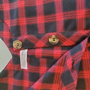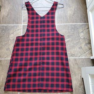 *Red and black tartan plaid double v neck sleeveless dress that is perfect for layering during the winter months.