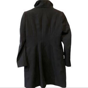 Zara knee length trench coat black faux leather trim cowl high neck size large EUC