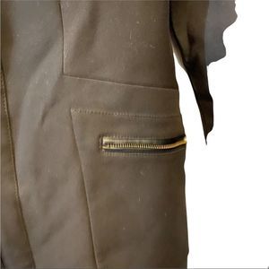 Zara knee length trench coat black faux leather trim cowl high neck size large