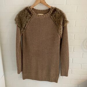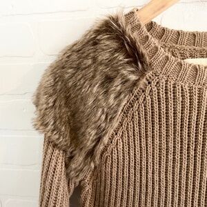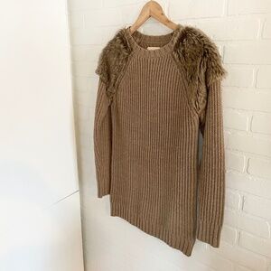 Zara knit Women’s Knit Dress/Tunic/Sweater Wool Mohair Blend Faux fur Tan Sz M