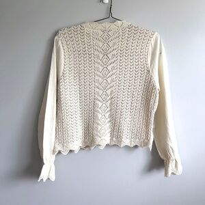 Cream colour Zara knit blouse, round neckline, ruffle sleeves, peplum hem.