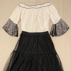 Zara lace off-the-shoulder top & H&M Full polka dots double-layered tulle skirt